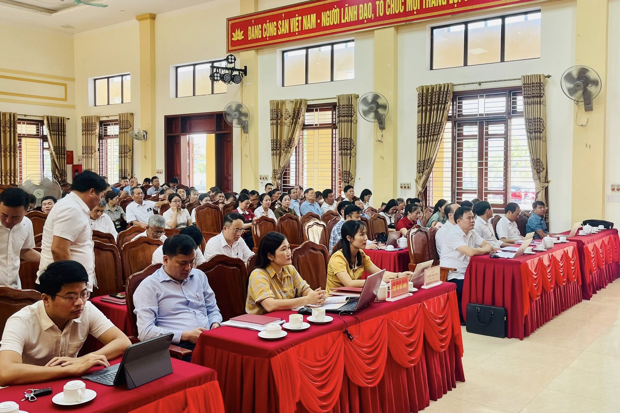 Đông đảo cán bộ, công chức trong cơ quan Đảng uỷ, HĐND, UBND, UBND, UBMTTQ xã lãnh đạo các cơ quan, đơn vị trên địa bàn như trường học, trạm y tế; cùng đội ngũ cán bộ cốt cán các thôn tham gia học tập NQ Đại hội XIV của Đảng