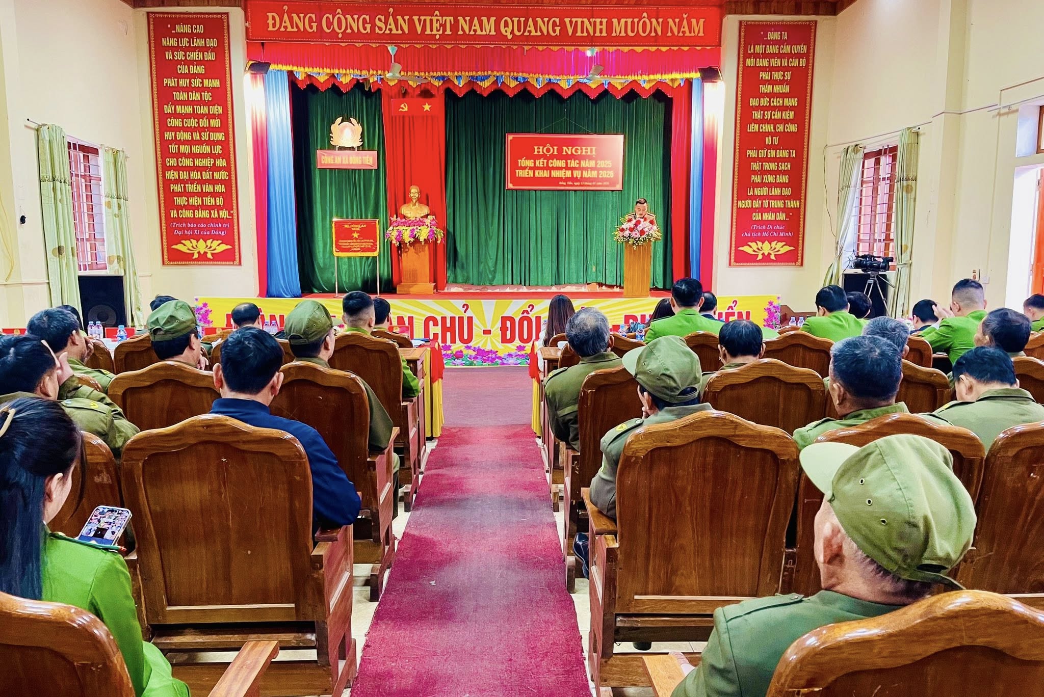 Toàn cảnh hội nghị tổng kết năm 2025, triển khai nhiệm vụ năm 2026 của Công an xã Đồng Tiến.