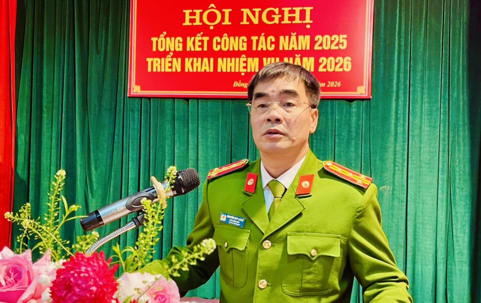 Phát biểu tại Hội nghị tổng kết công tác năm 2025, triển khai nhiệm vụ năm 2026 của Công an xã Đồng Tiến, Đại tá Nguyễn Duy Đông – Phó Giám đốc Công an tỉnh ghi nhận, biểu dương những kết quả mà Công an xã đã đạt được trong năm 2025; đồng thời đề nghị đơn vị tiếp tục phát huy tinh thần trách nhiệm, chủ động nắm chắc tình hình địa bàn, làm tốt công tác tham mưu cho cấp ủy, chính quyền địa phương, tăng cường đấu tranh phòng, chống các loại tội phạm, giữ vững an ninh trật tự, phục vụ hiệu quả nhiệm vụ phát triển kinh tế – xã hội và bảo đảm cuộc sống bình yên cho Nhân dân trong năm 2026.