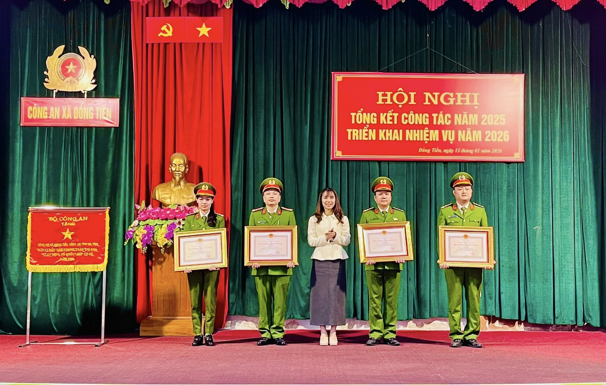 Tại hội nghị có 9 cán bộ chiến sĩ Công an xã Đồng Tiến được trao Huy chương chiến sĩ vẽ vang hạng nhì, hạng ba, 4 cán bộ chiến sĩ đạt danh hiệu chiến sĩ thi đua cơ sở. Công an xã Đồng Tiến cũng đã phát động phong trào thi đua thực hiện nhiệm vụ năm 2026.