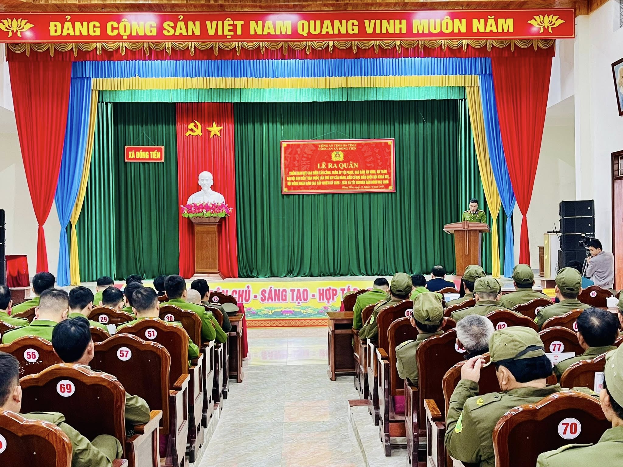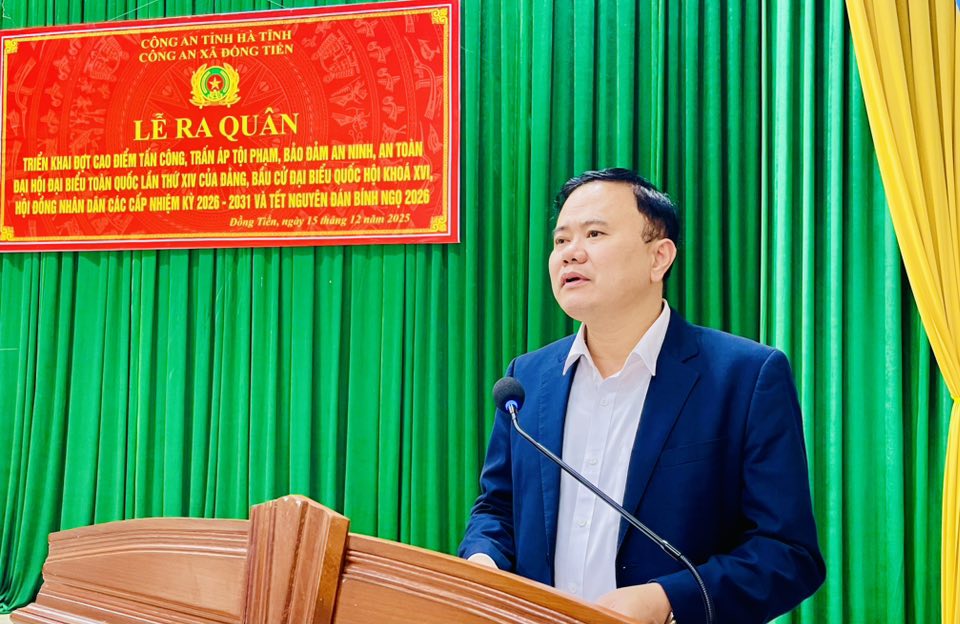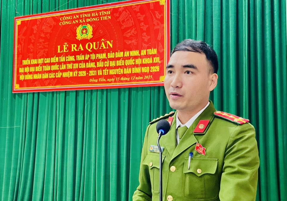 Phát biểu giao nhiệm vụ tại lễ ra quân, đồng chí Nguyễn Văn Huyên PBT ĐU, Chủ tịch UBND xã Đồng Tiến yêu cầu lực lượng Công an xã chủ động nắm chắc tình hình, bám sát địa bàn, tập trung đấu tranh quyết liệt với các loại tội phạm, nhất là tội phạm hình sự, ma túy, cờ bạc, mua bán, tàng trử, sử dụng pháo và các chất cấm, vi phạm trật tự an toàn giao thông. Đồng thời, tăng cường công tác phối hợp với các ban, ngành, đoàn thể và các thôn trong tuyên truyền, vận động Nhân dân nâng cao ý thức chấp hành pháp luật; kịp thời phát hiện, xử lý các vụ việc phát sinh ngay từ cơ sở, góp phần bảo đảm an ninh, trật tự, an toàn xã hội, phục vụ tốt các sự kiện chính trị quan trọng và Nhân dân vui Tết, đón Xuân an toàn, lành mạnh.