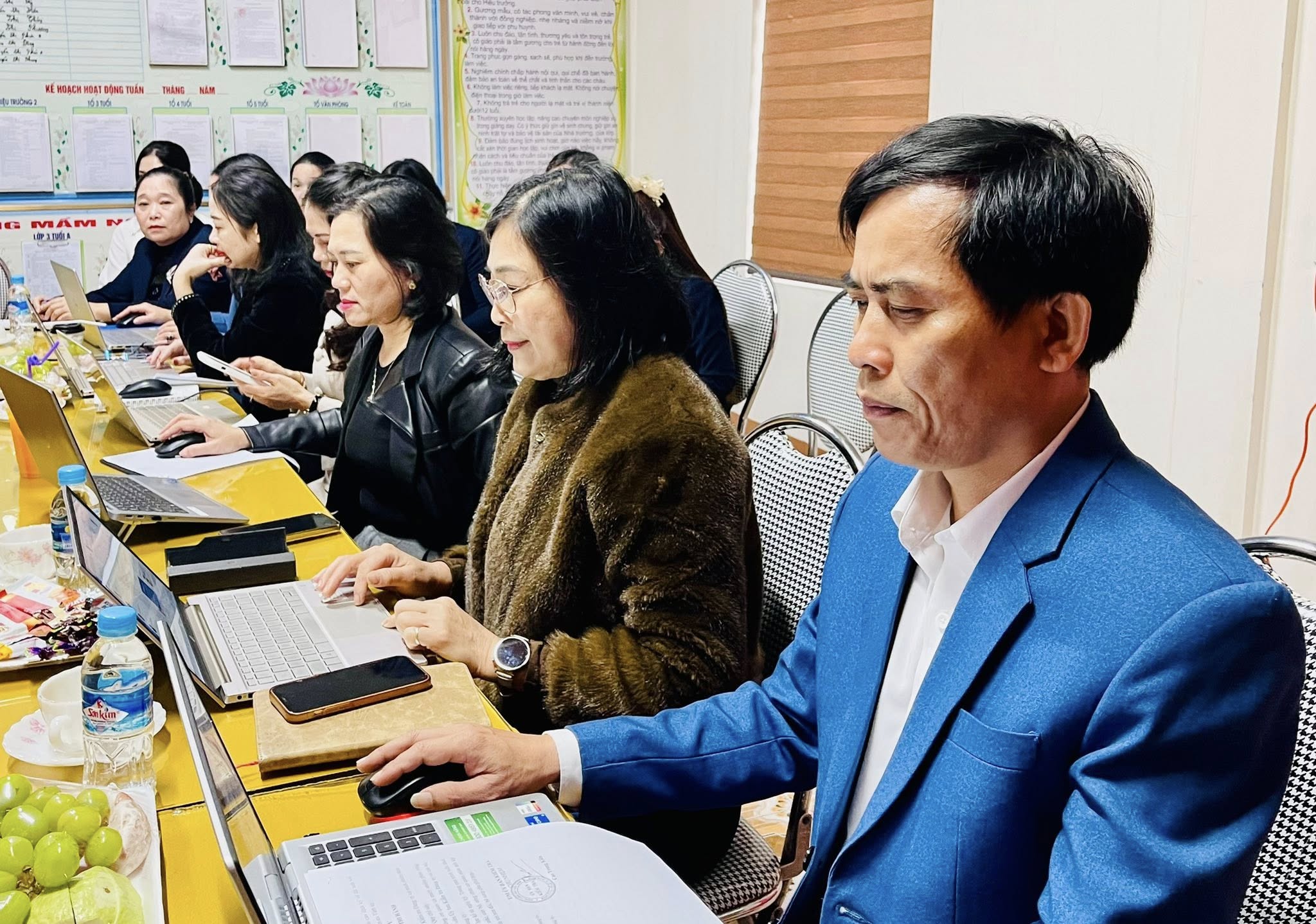 Toàn cảnh buổi làm việc của Đoàn đánh giá ngoài của Sở Giáo dục và Đào tạo (GD&ĐT) tỉnh Hà Tĩnh tại trường Mầm non Thạch Văn