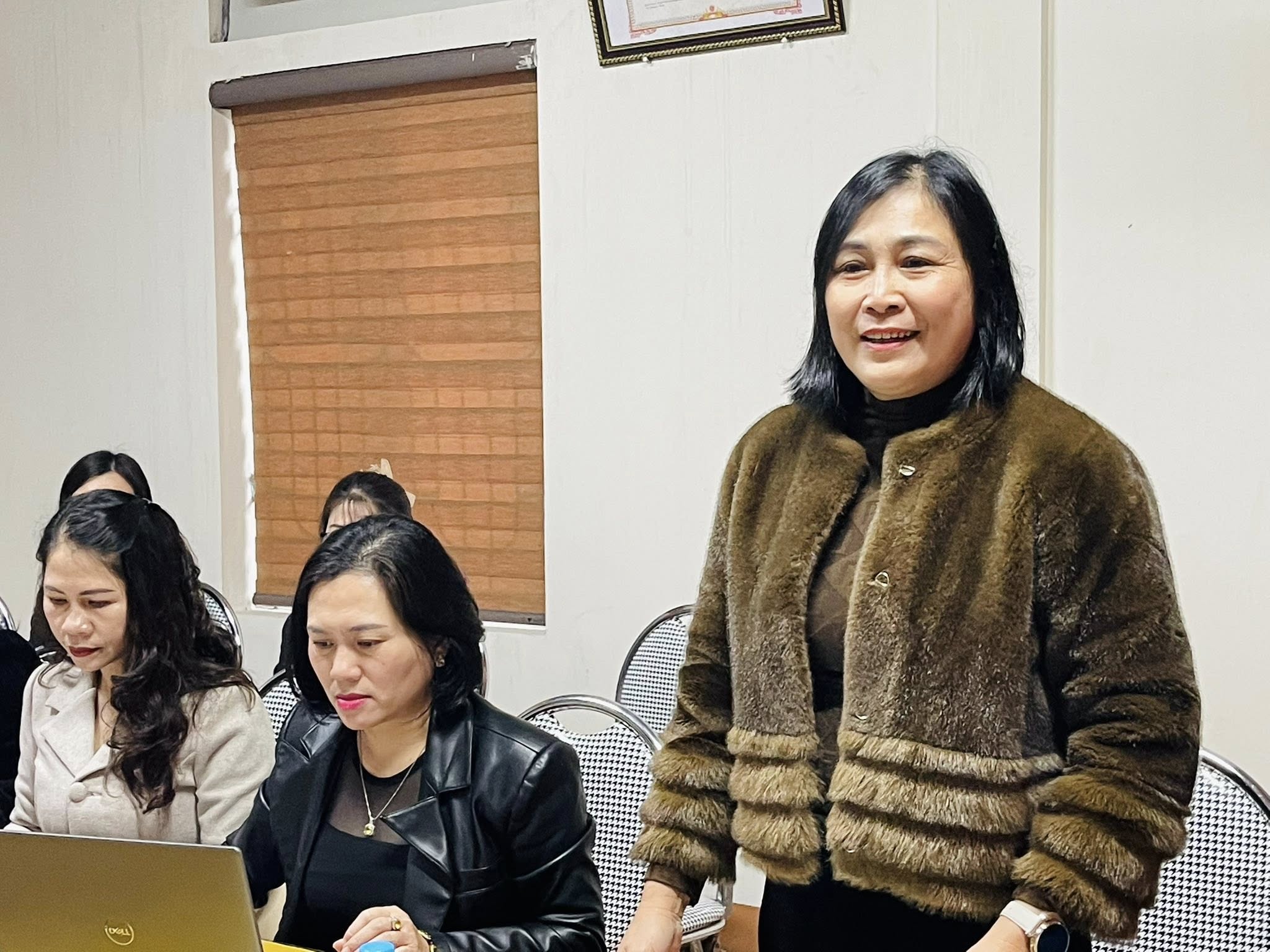 Lãnh đạo trường Mầm non Thạch Văn báo cáo những kết quả đạt được