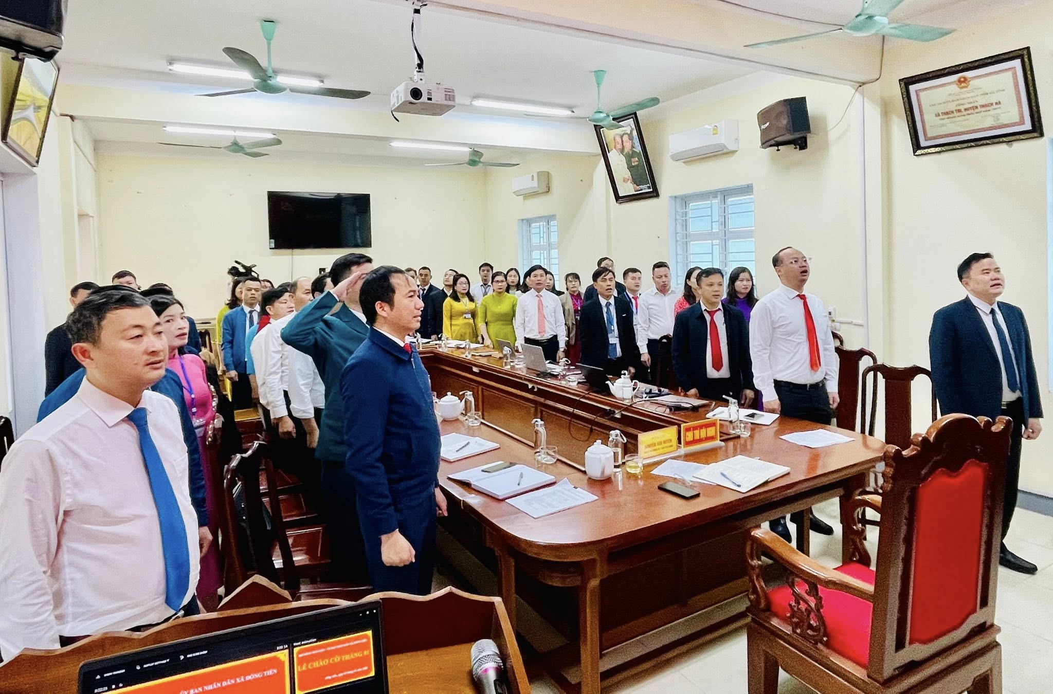 Lễ chào cờ đầu tháng 1 của cơ quan HĐND,UBND xã Đồng Tiến