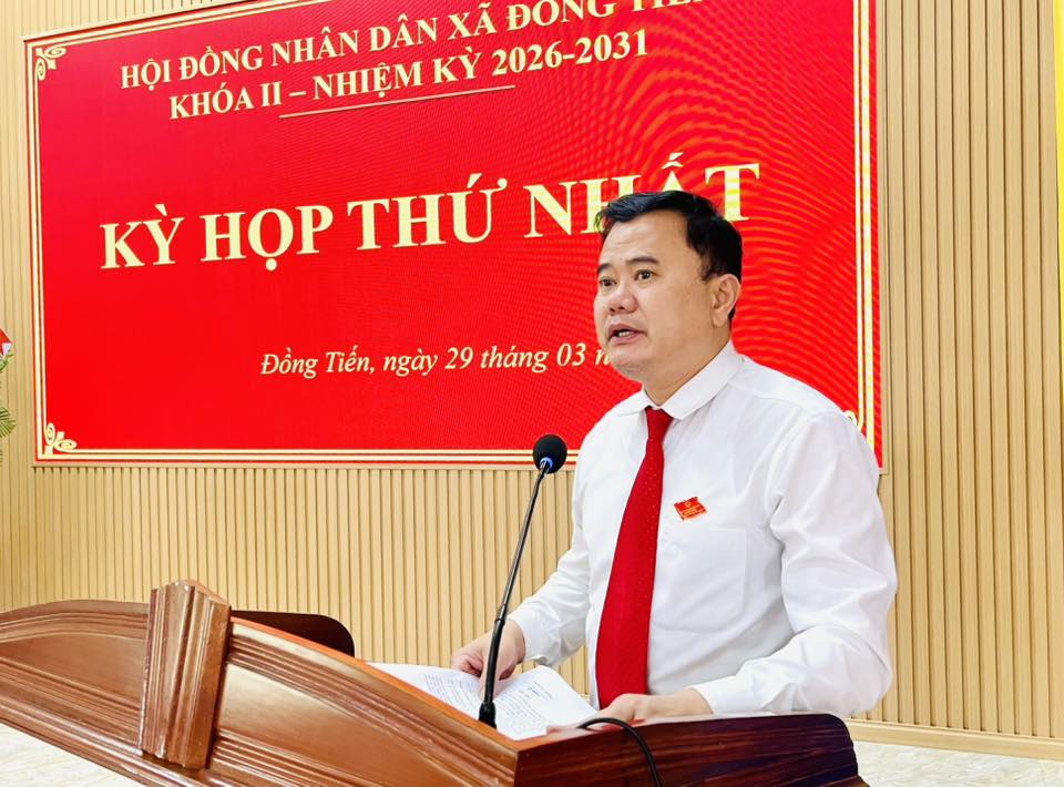Kỳ họp thứ nhất HĐND xã Đồng Tiến nhiệm kỳ 2026 – 2031 đã diễn ra thành công tốt đẹp, tạo tiền đề quan trọng để bộ máy chính quyền địa phương sớm ổn định, đi vào hoạt động hiệu quả.