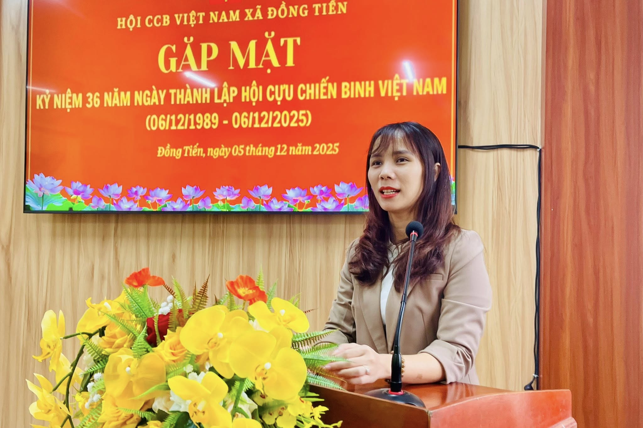Phát biểu tại lễ gặp mặt, thay mặt lãnh đạo xã đồng chí Nguyễn Thị Như Ngọc - BT Đảng uỷ,Chủ tịch HĐND xã bày tỏ lòng tri ân sâu sắc đối với những đóng góp to lớn của các thế hệ cựu chiến binh trong sự nghiệp xây dựng và bảo vệ Tổ quốc, đồng thời ghi nhận vai trò nòng cốt của Hội trong các phong trào thi đua ở địa phương.Đồng chí mong muốn thời gian tới, Hội Cựu chiến binh xã tiếp tục phát huy truyền thống “Bộ đội Cụ Hồ”, đoàn kết, gương mẫu, tích cực tham gia phát triển kinh tế – xã hội và xây dựng tổ chức hội ngày càng vững mạnh