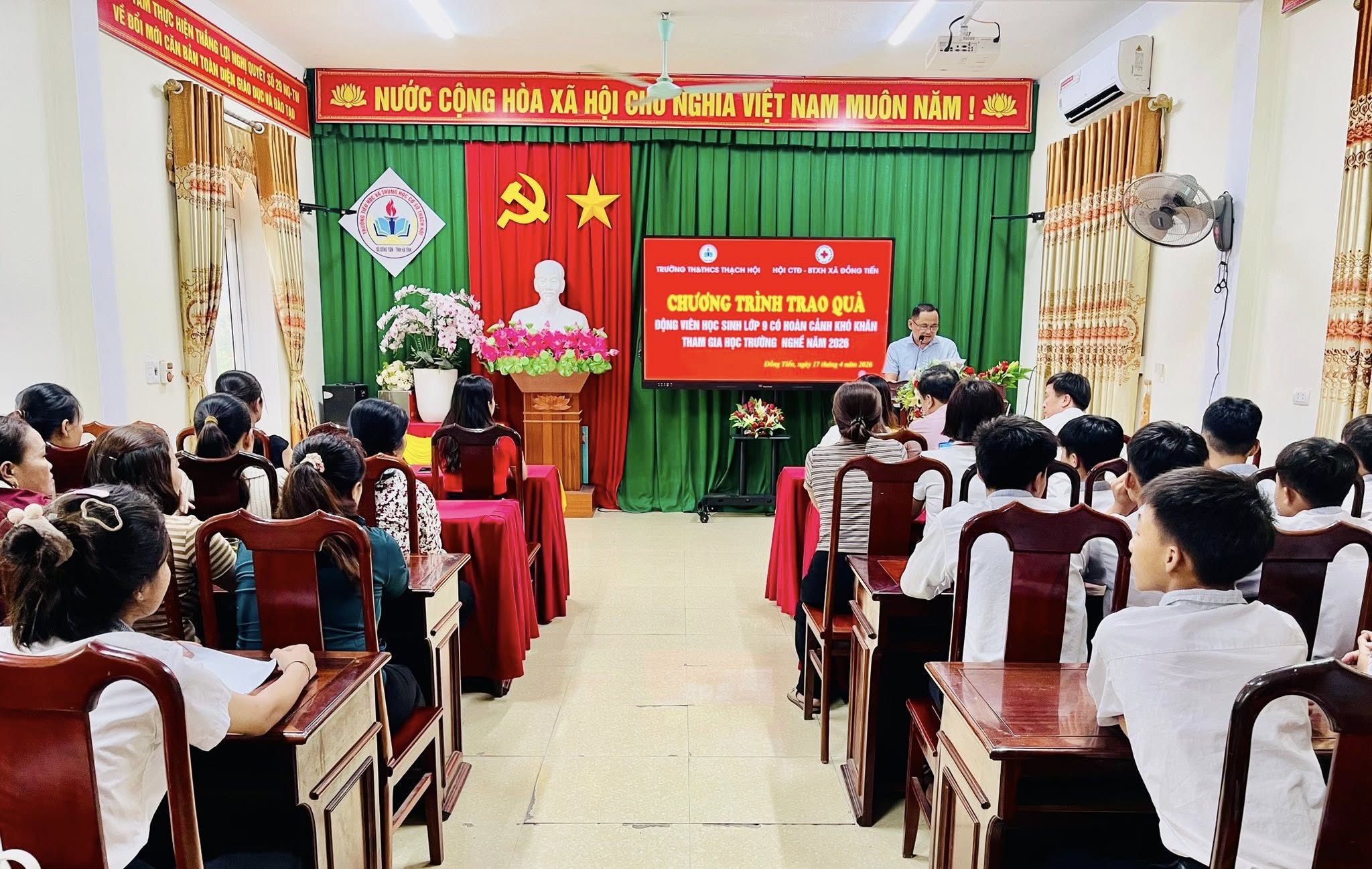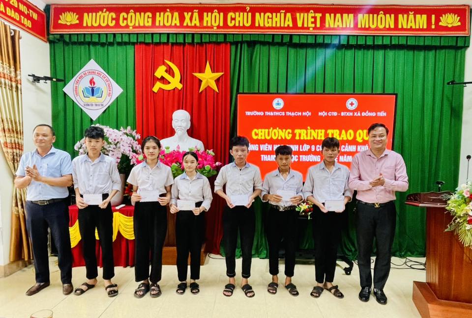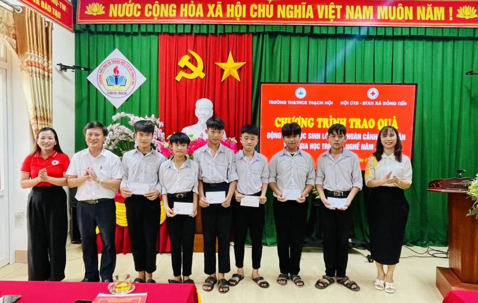 Chương trình trao quà cho học sinh lớp 9 tham gia học nghề năm 2026 ở trường TH& THCS Thạch Hội