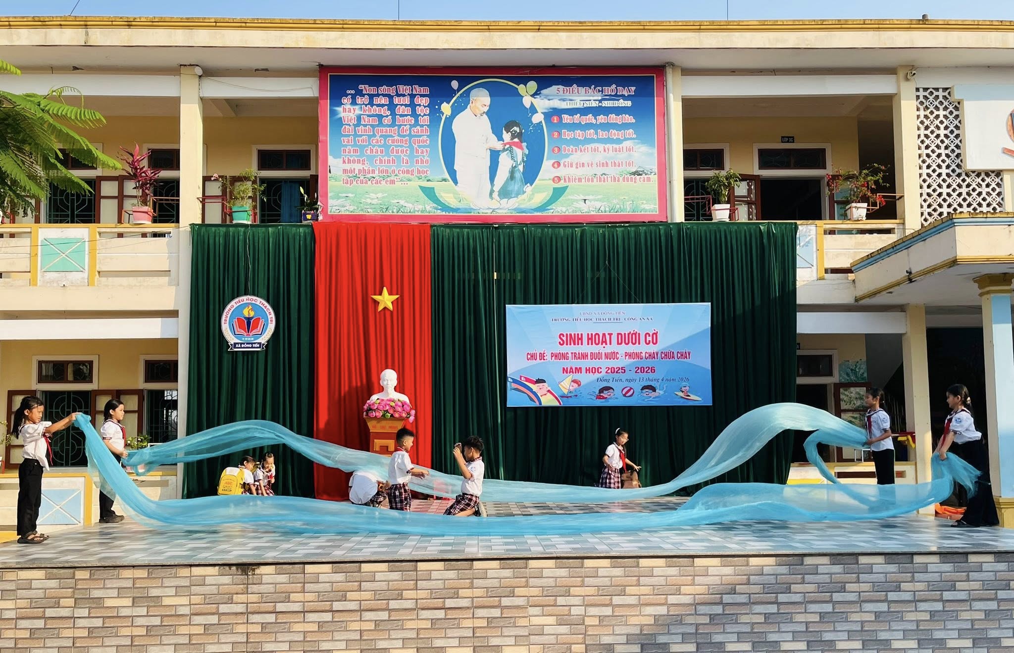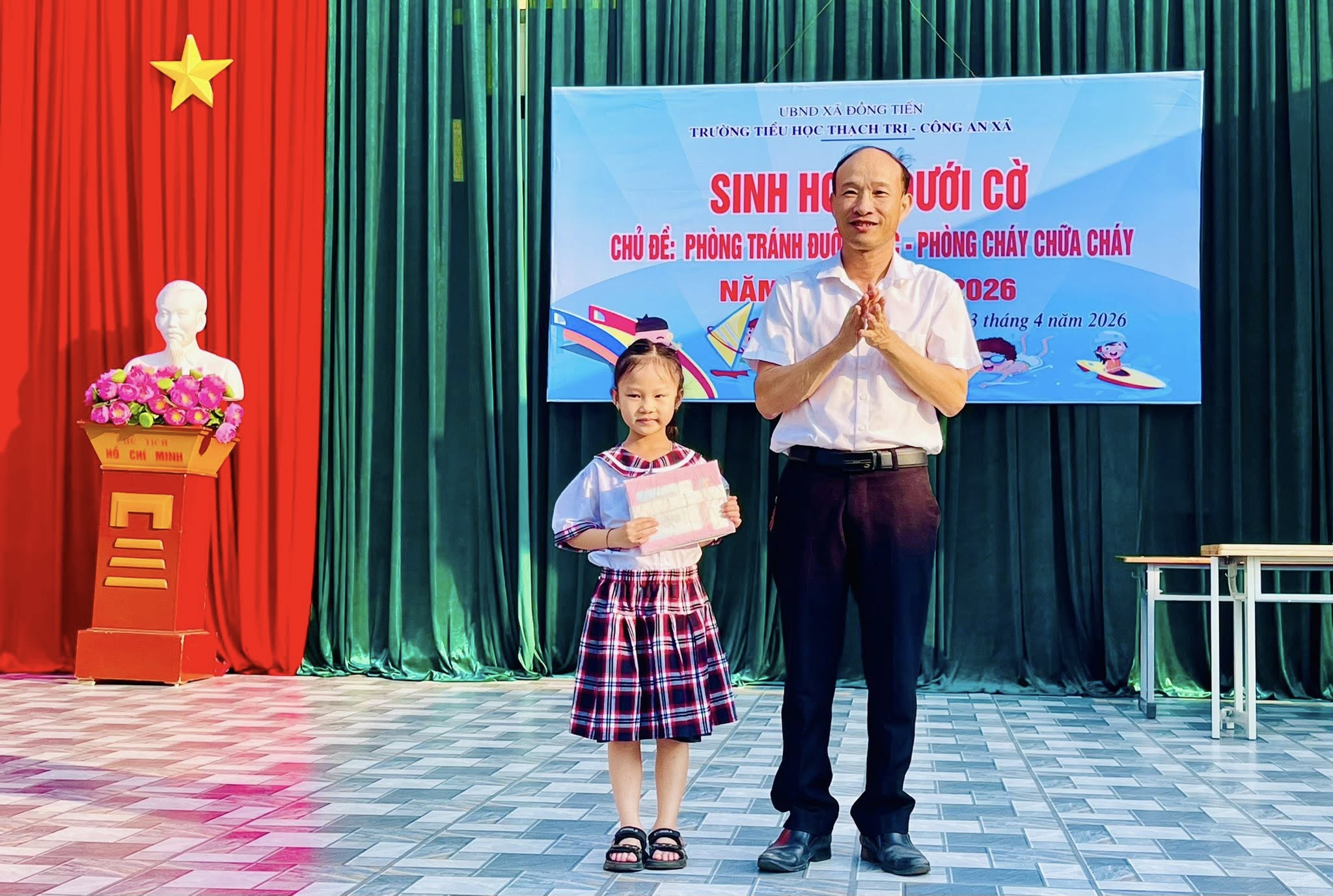Điểm nhấn đầy ý nghĩa của chương trình là phần tuyên truyền trực tiếp từ cán bộ Công an xã. Những lời chia sẻ chân thành, dễ hiểu nhưng không kém phần sâu sắc đã giúp các em học sinh nhận thức rõ hơn về hiểm họa đuối nước cũng như nguy cơ cháy nổ trong mùa khô. Không chỉ dừng lại ở lý thuyết, các em còn được hướng dẫn những kỹ năng cơ bản để xử lý tình huống, từ đó hình thành ý thức chủ động phòng tránh trong cuộc sống hằng ngày.