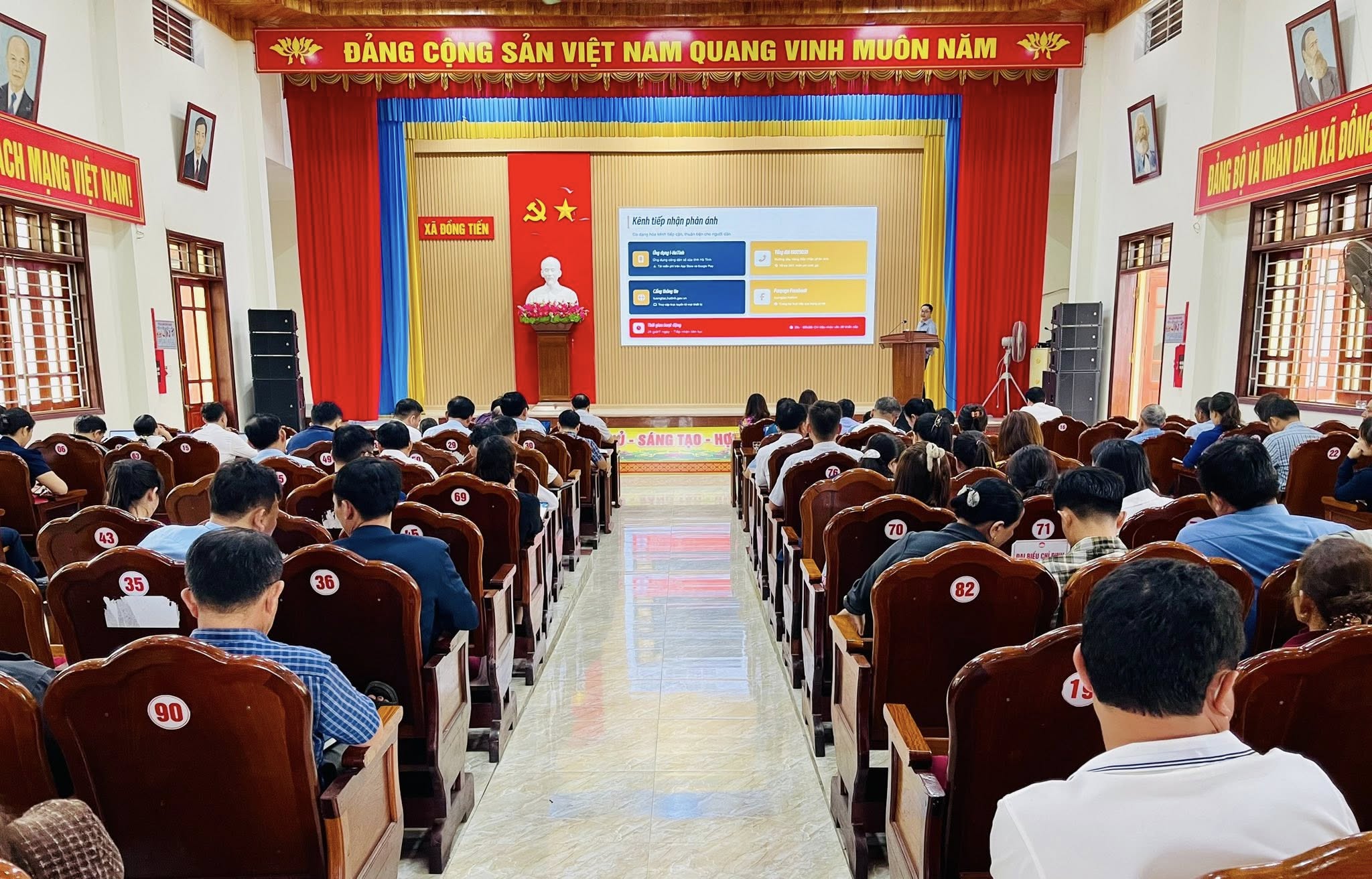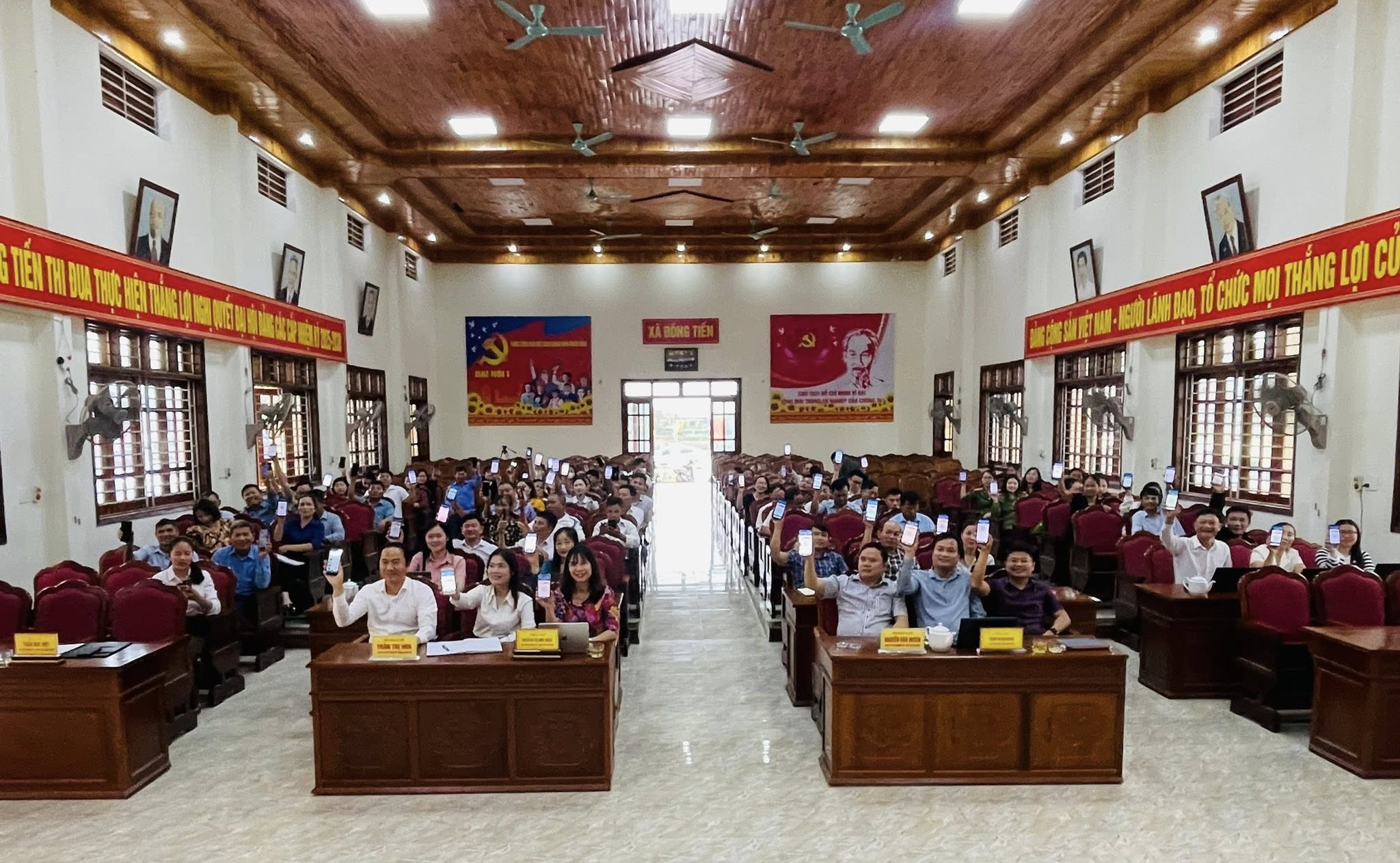 Cán bộ công nhân viên chức, người lao động cơ quan xã Đồng Tiến đồng tình hưởng ứng cài đặt ứng dụng Công dân số Hà Tĩnh (i-Hà Tĩnh) tích hợp nền tảng phản ánh hiện trường