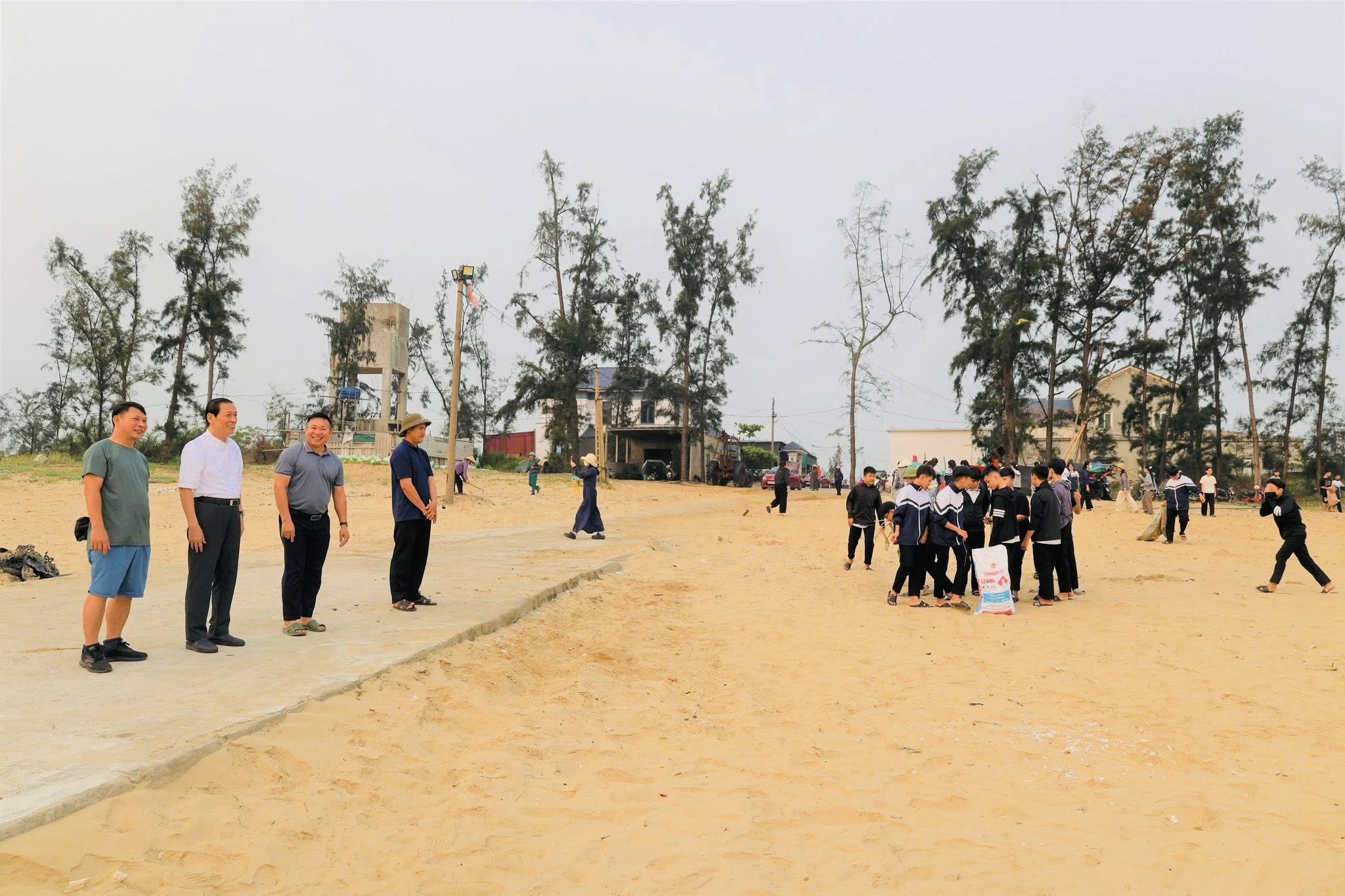 Cán bộ, công nhân viên, người lao động, cùng lực lượng Công an, BCH Quân sự xã, giáo viên, học sinh và nhân dân 4 thôn ven biển đồng loạt tham gia