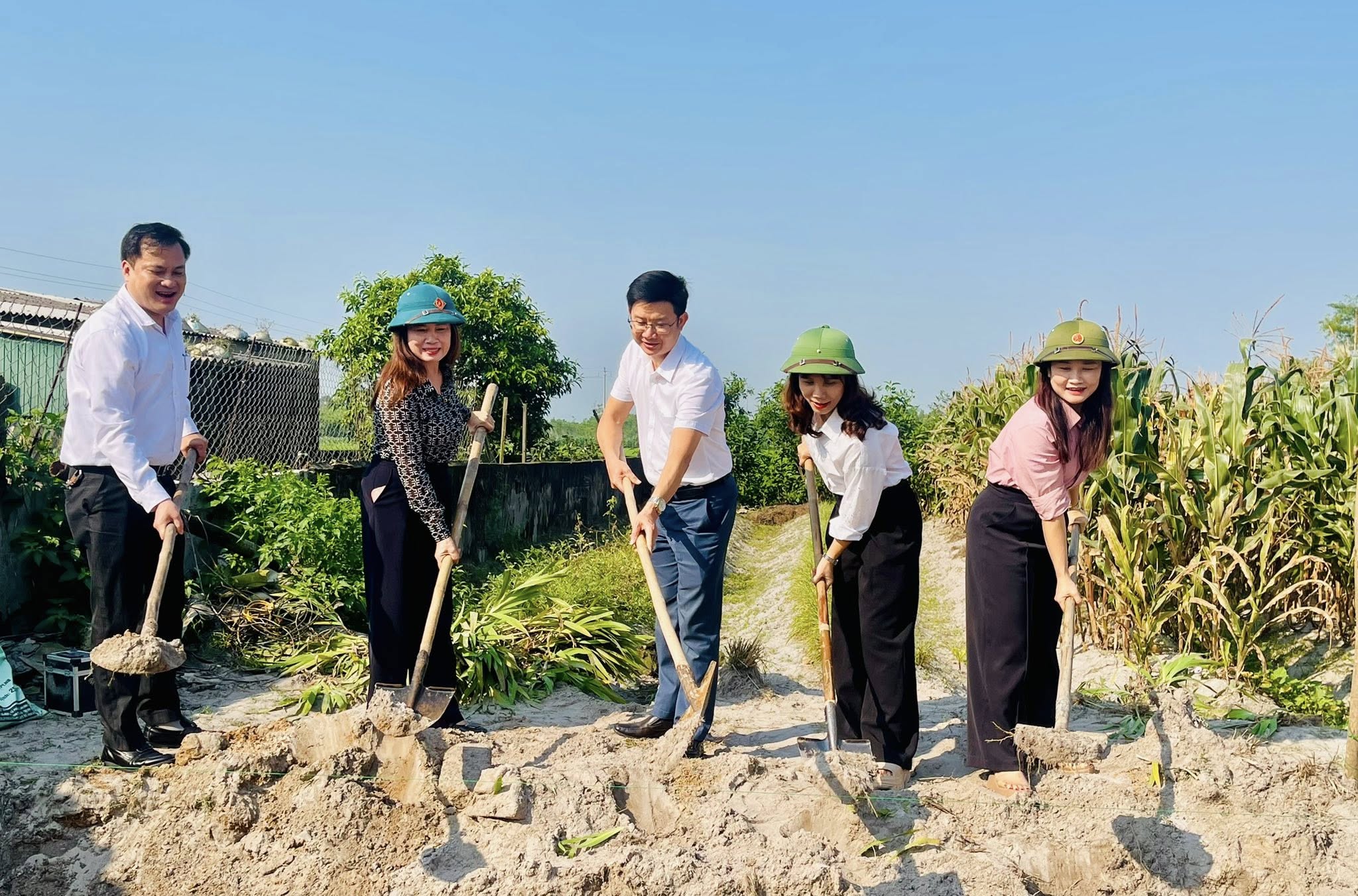 Các đại biểu về dự trực tiếp động thổ để làm nhà cho bà Thái Thị Lương.